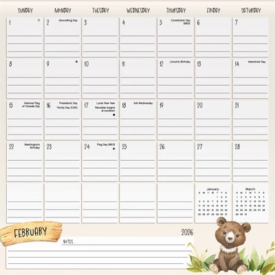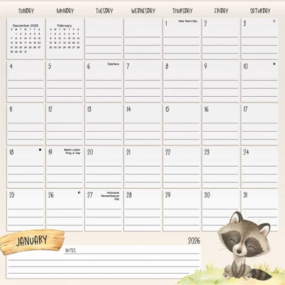 Embrace your inner child with the 2026 Animals Calendar, featuring joyful illustrations of animals in nature. The calendar includes reminder stickers so you can easily save a date in style, as well as coordinating nature stickers to make your monthly spreads even more eye-catching. Sixteen-month magnetic family calendars feature detachable monthly pages for September 2025 to December 2026. Each page highlights federal holidays and moon phases, with spacious daily blocks and notes sections for jotting down tasks and appointments. Includes over 300 stickers to help you stay organized and have fun doing it. Comes with four large magnets for easy hanging on your fridge, metal filing cabinet or any magnetic surface.