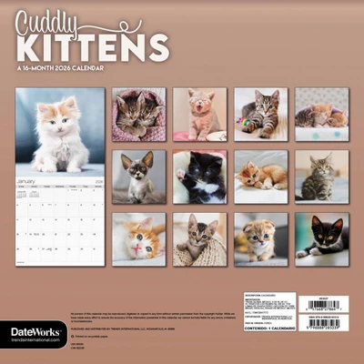 - This 2026 Cuddly Kittens Wall Calendar features monthly pages for January to December 2026, as well as the last 4 months of 2025