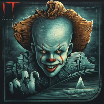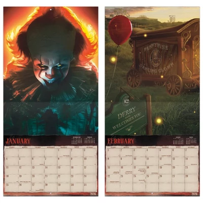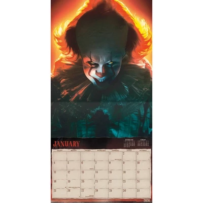 The films IT and IT Chapter Two brought Pennywise back to life in a blockbuster retelling of the Stephen King novel. Fear is a weapon in the 2026 IT Calendar featuring images of our favorite Dancing Clown. Watch out for that sewer drain! Sixteen-month wall calendars feature monthly pages for January to December 2026, as well as a page combining the last four months of 2025. Each monthly page includes federal holidays and moon phases, with sufficient daily blocks for jotting down tasks and appointments to help you stay organized. Features 13 high-quality images printed on premium paper certified by the Forest Stewardship Council. Perfect for hanging on your wall, corkboard or bulletin board at home, school or the office.