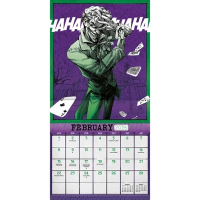The Clown Prince of Crime is Gotham’s most notorious villain and Batman’s least-predictable adversary. The Joker’s a homicidal artist and a psychopath who only finds humor in the suffering of others. If you’re sure you want to enter his maniacal psyche, the 2026 The Joker Calendar is your key. Sixteen-month wall calendars feature monthly pages for January to December 2026, as well as a page combining the last four months of 2025. Each monthly page includes federal holidays and moon phases, with sufficient daily blocks for jotting down tasks and appointments to help you stay organized. Features 13 high-quality images printed on premium paper certified by the Forest Stewardship Council. Perfect for hanging on your wall, corkboard or bulletin board at home, school or the office.
