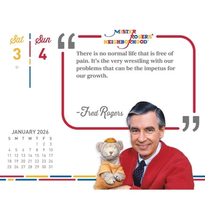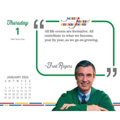 - This 2026 Mister Rogers Day-at-a-Time Box Calendar features full-color, tear-off pages with unique content on every page