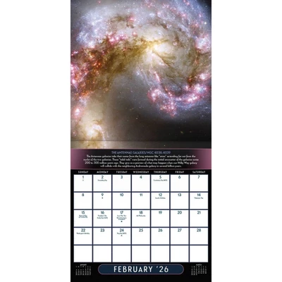 Bring the mysteries of space alive with infrared images of the galaxies around our own from NASA’s Hubble Telescope in the 2026 NASA: Views From the Hubble Telescope Calendar. Enjoy our universe in full color as you explore space right from your home or office with NASA’s powerful tools and expertise. Sixteen-month wall calendars feature monthly pages for January to December 2026, as well as a page combining the last four months of 2025. Each monthly page includes federal holidays and moon phases, with sufficient daily blocks for jotting down tasks and appointments to help you stay organized. Features 13 high-quality images printed on premium paper certified by the Forest Stewardship Council. Perfect for hanging on your wall, corkboard or bulletin board at home, school or the office.