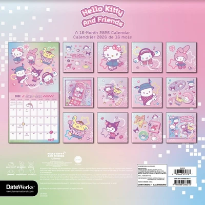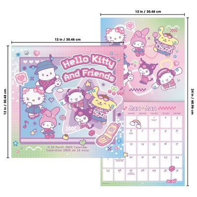 - This 2026 Sanrio – Hello Kitty and Friends (Bilingual French) Wall Calendar features monthly pages for January to December 2026, as well as the last 4 months of 2025