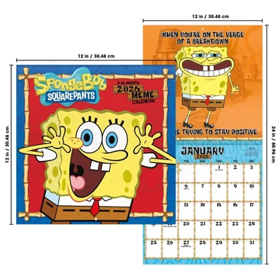 - This 2026 SpongeBob Squarepants Wall Calendar features monthly pages for January to December 2026, as well as the last 4 months of 2025