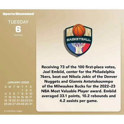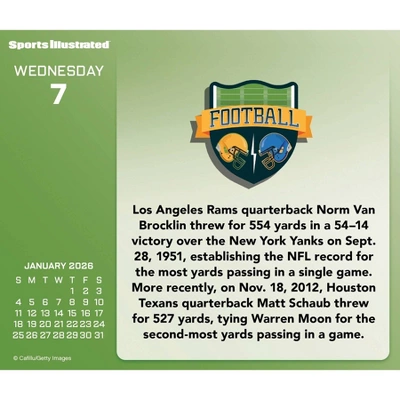 - This 2026 Sports Illustrated Sports Day-at-a-Time Box Calendar features full-color, tear-off pages with unique content on every page
