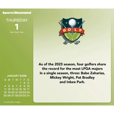 Tennis, soccer, racing, football, basketball, hockey and more—you’ll be quite the sports know-it-all after studying this 2026 Sports Illustrated Sports Calendar. There are more than 300 facts about the greats of the games, matches and races to expand your knowledge and wow your friends. The perfect gift for someone on your list, or for yourself. Day-at-a-time box calendars feature over 300 full-color, tear-off pages with unique designs for every day of the year (Saturday/Sunday combined to create weekend pages). Highlights federal holidays and moon phases to help you stay organized. Includes an eco-friendly, plastic-free easel for easy display on your desk, table or shelf at home, school or the office.