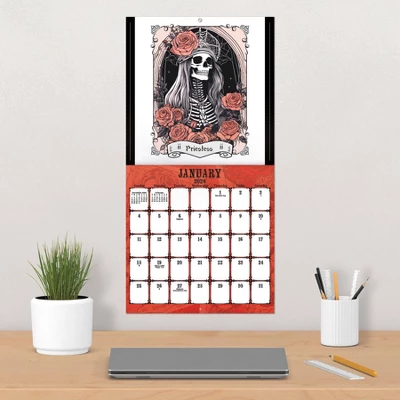 Embrace the mystical and the esoteric with the brand-new 2026 Skulls and Roses Tarot Calendar. This collection of tarot card art is a tribute to the guidance, support, and insight that card readings can offer through the twists and turns of life. Sixteen-month wall calendars feature monthly pages for January to December 2026, as well as a page combining the last four months of 2025. Each monthly page includes federal holidays and moon phases, with sufficient daily blocks for jotting down tasks and appointments to help you stay organized. Features 13 high-quality images printed on premium paper certified by the Forest Stewardship Council. Perfect for hanging on your wall, corkboard or bulletin board at home, school or the office.