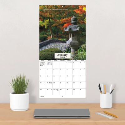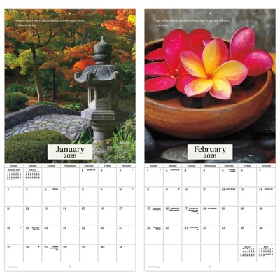 In these days of endless screens and scrolling, our need to decompress and refocus is more important than ever. The 2026 Zen Calendar pairs inspirational sayings from history’s wisest souls with stunning, yet simple, imagery to encourage our bodies and minds to relax. Sixteen-month wall calendars feature monthly pages for January to December 2026, as well as a page combining the last four months of 2025. Each monthly page includes federal holidays and moon phases, with sufficient daily blocks for jotting down tasks and appointments to help you stay organized. Features 13 high-quality images printed on premium paper certified by the Forest Stewardship Council. Perfect for hanging on your wall, corkboard or bulletin board at home, school or the office.
