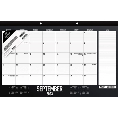 - This 2024 Classic Black Desk Pad Calendar features tear-off monthly pages with notes sections for September 2023 to December 2024