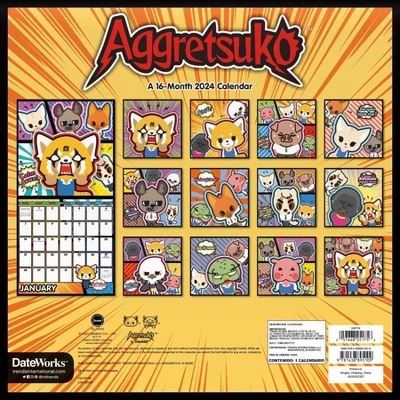 - This 2024 Aggretsuko Wall Calendar features monthly pages for January to December 2024, as well as the last 4 months of 2023