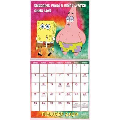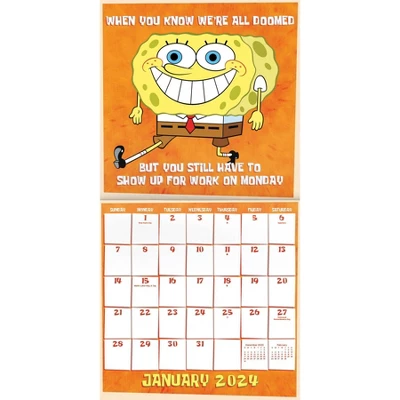 - This 2024 Nickelodeon SpongeBob SquarePants Wall Calendar features monthly pages for January to December 2024, as well as the last 4 months of 2023