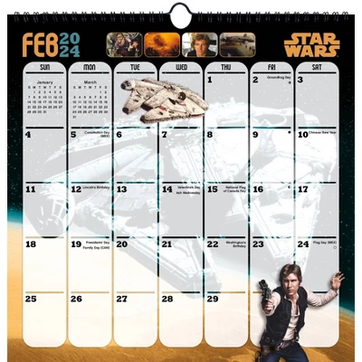 Spend the year on the Outer Rim of a galaxy far, far away with this 2024 Star Wars Calendar. The spacious grid space makes tracking your schedule easy. These DateWorks Wall Calendars feature a calendar spread for each month of 2024 and are spiral-bound with a hook for ease of hanging. Each monthly calendar spread features enough room to mark important dates or write down reminder notes – making them perfect for staying organized and productive all year long. 2023-2024 Spiral Wall Calendars also make a great gift for anyone on your list!