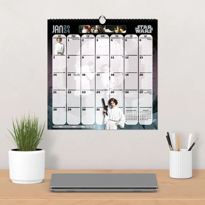 - This 2024 Star Wars: Saga Spiral Wall Calendar features 12 monthly calendar pages for January to December 2024