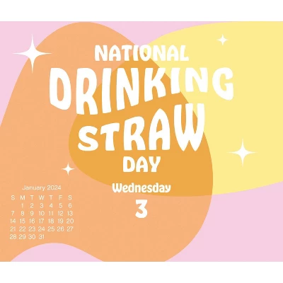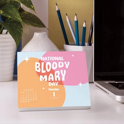 Celebrate every day of the year with this 2024 Celebrate Daily Calendar. From National Bloody Mary Day to National Bird Day, you’ll find a reason to celebrate every day. Day-at-a-Time Calendars feature full-color, page-a-day designs with Saturday and Sunday combined, and a sturdy, self-standing easel making it the perfect addition to your office desk decor. To help reduce waste, DateWorks Day-at-a-Time Calendars are now plastic-free! The former plastic easel is now a sturdy, eco-friendly gray board material. DateWorks 2024 Calendars are great for staying organized and productive all year long. They also make a perfect gift for anyone on your list!