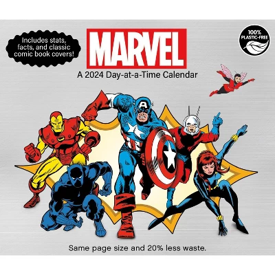 - This 2024 Marvel – History of Marvel Day-at-a-Time Box Calendar features full-color, tear-off pages with unique content on every page